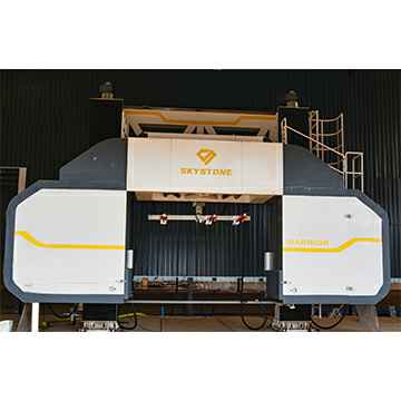说明:1. 应用于工厂石材荒料加工,通过安装使用金刚石组合绳锯对石材荒料进行切割,实现大板的批量高效生产。